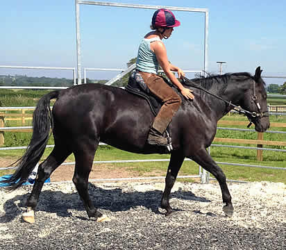 Only when the horse is completely comfortable and responsive to the longlining, will a rider be put on board in the round pen. The horse once responding to the rider fully in the round pen will then be ridden around the farm, and out onto the lanes.