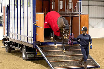 You stand in front of the horse look him in the eye, which tells him to back off, and you then pull, and because horses are ‘into pressure’ animals, he pulls right back. Horses that have never been trained using Equus, often load very well. However, how many of them would load by simply following their owner into the box with no headcollar? Very few, but any horse that has been trained to load using Equus, will load easily with no headcollar, if required. |